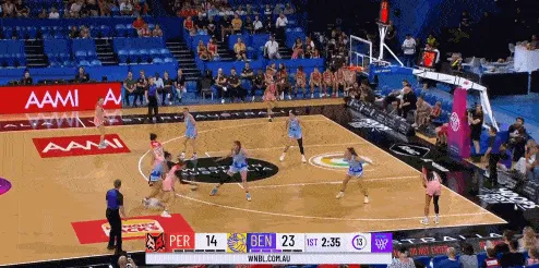 韩旭在篮下的二次进攻。(韩旭在WNBL联赛有明显的身高优势)